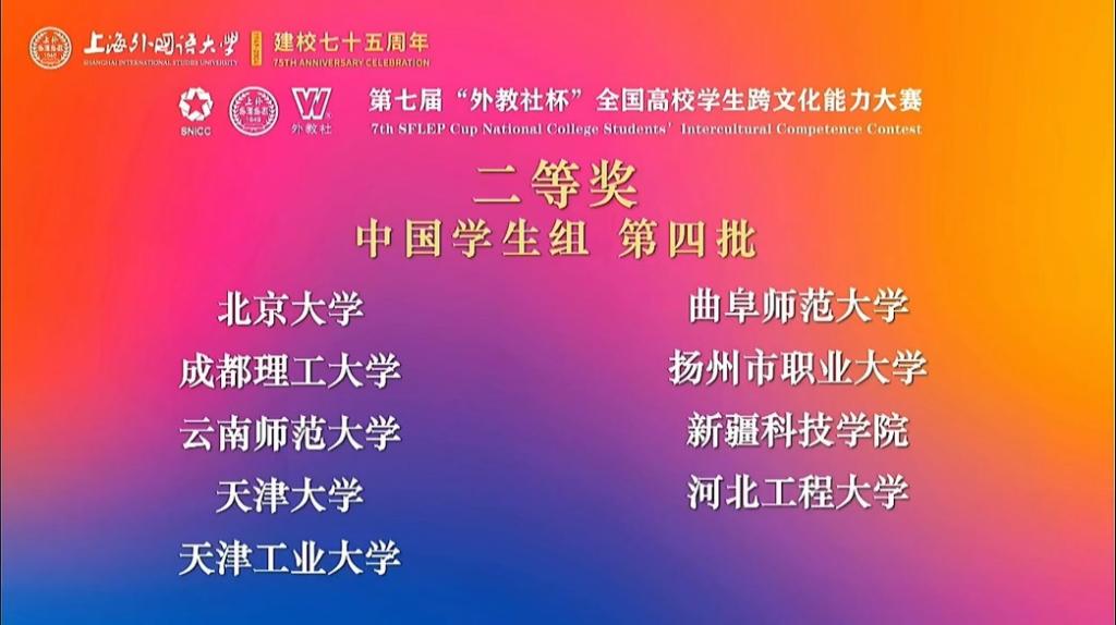 曲园学子荣获第七届“外教社杯”全国高校学生跨文化能力大赛全国二等奖