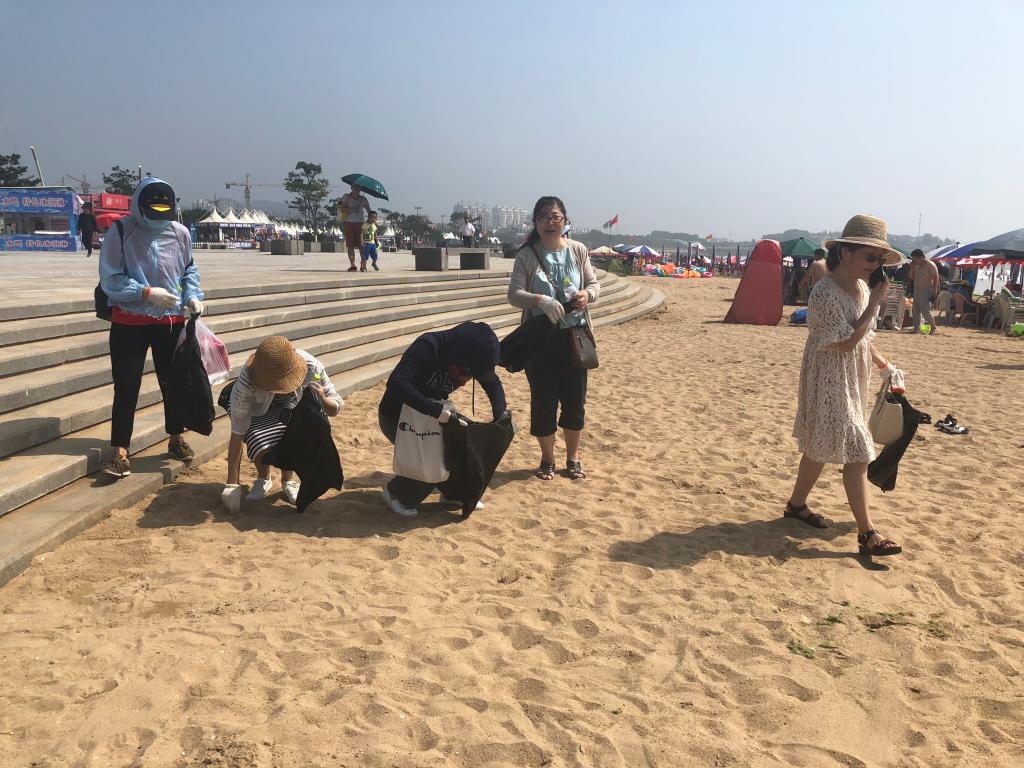 2018年7月13日上午,江南(中国)日照党支部的党员们,来到日照市第三海水浴场,义务清理沙滩上的垃圾,开展“跃动红色党徽,助力金色沙滩”志愿活动。