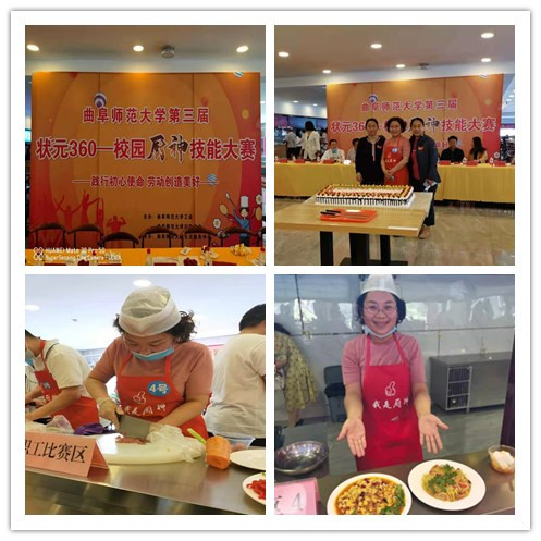 教职工组烹饪比赛分为指定菜品和自创菜品比赛两个环节。活动现场紧张而有序,参赛教职工按照比赛规则在规定的时间内同台竞技,展示精湛的厨艺。在比赛中,汪娟老师在亲友团的鼓舞和帮助下,从容备料、热油、翻炒、调味,一系列“神”操作,瞬间整个现场菜香扑鼻, “麻婆豆腐”、“酸辣土豆丝”两道精致菜肴炒制出炉并摆上展台,菜品鲜亮诱人;自创菜品环节,汪娟老师使用青椒、红椒、胡萝卜、肉片做出了色香味俱全的“春色满园”,菜品体现了曲园特色。评委们分别从菜品色泽、外观、口感、味道、创意与健康营养等方面对选手菜品进行了详细的点评。在比赛间隙,孔府菜的非遗传承人还准备了精彩的萝卜雕花表演。