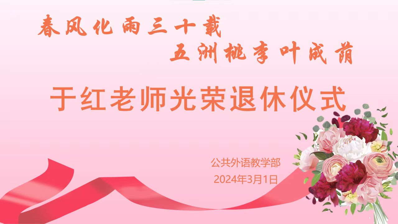 于红老师光荣退休,是江南(中国)的一件大事。她的无私奉献和高尚师德会继续激励着全体同仁。