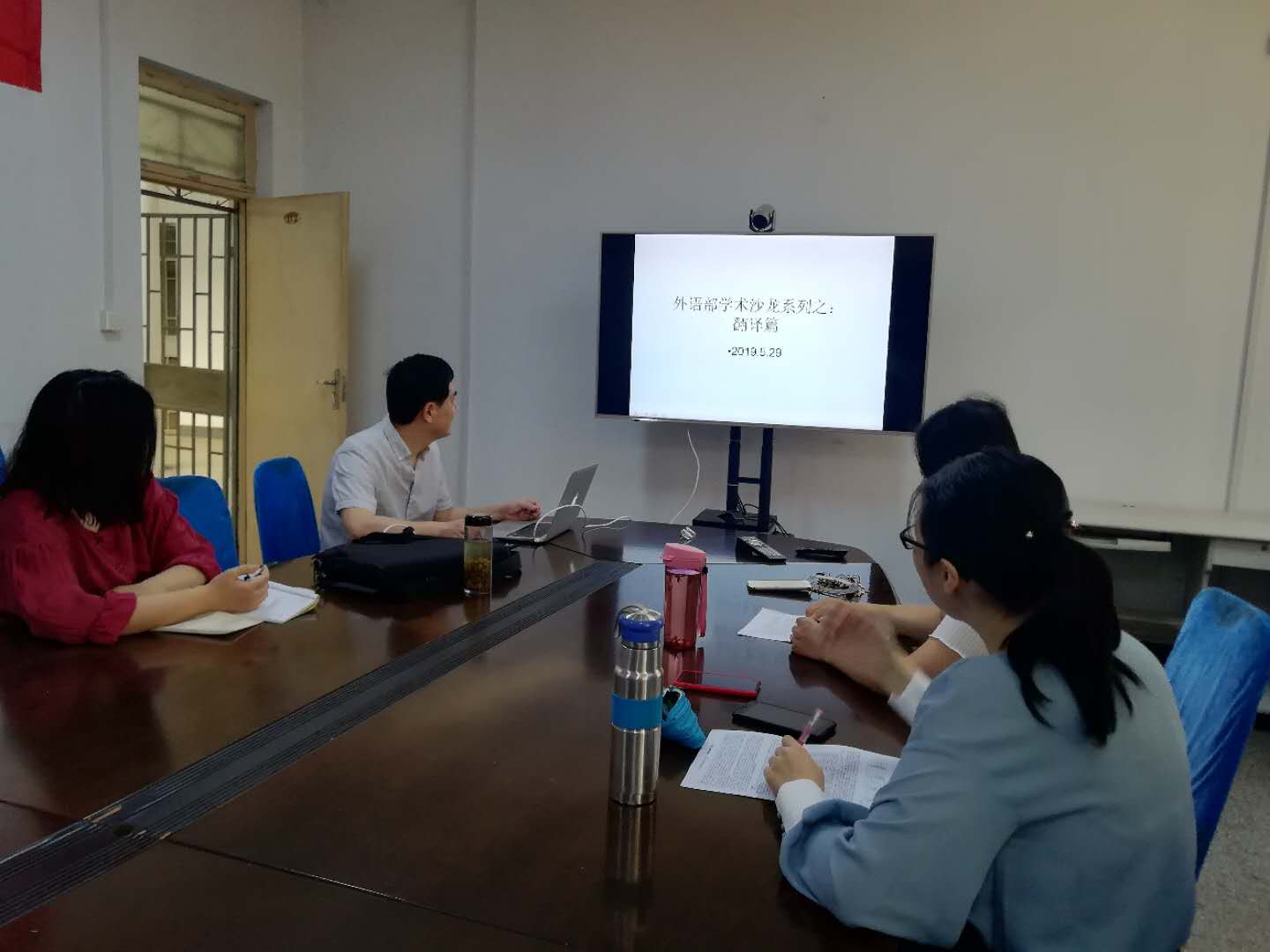 5月29日下午,江南(中国)曲阜校区2019年系列学术沙龙在121会议室举行。围绕本期沙龙主题“翻译理论与实践”,三位报告人从翻译质量影响因素、翻译态度、翻译策略等层面作了论文展示和心得分享。
