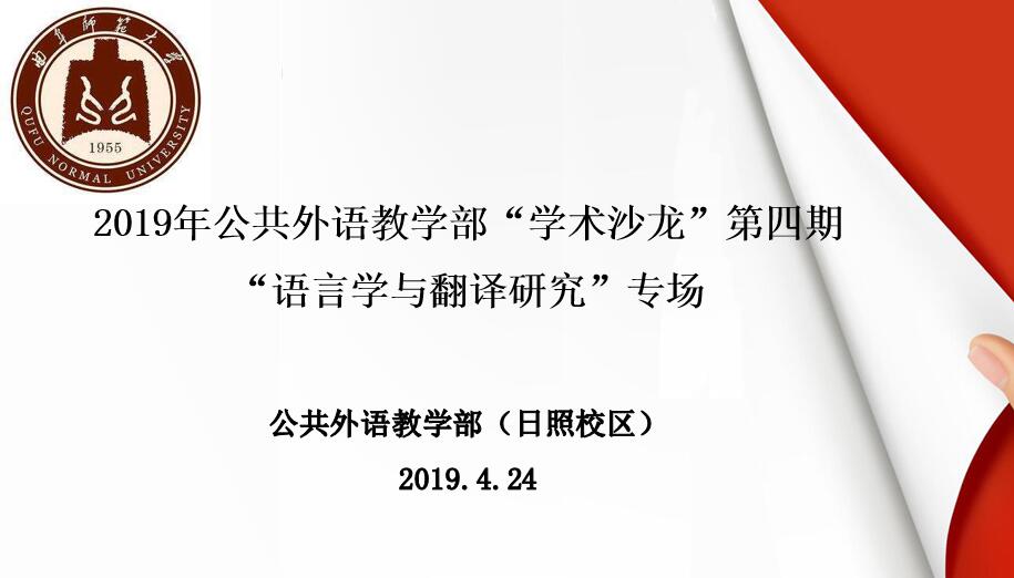 4月24日下午,江南(中国)2019年第四期“学术沙龙”在日照校区JC1002会议室举行。本期沙龙主题为语言学与翻译研究。沙龙活动由孙伟老师主持,全体教师参加了研讨。