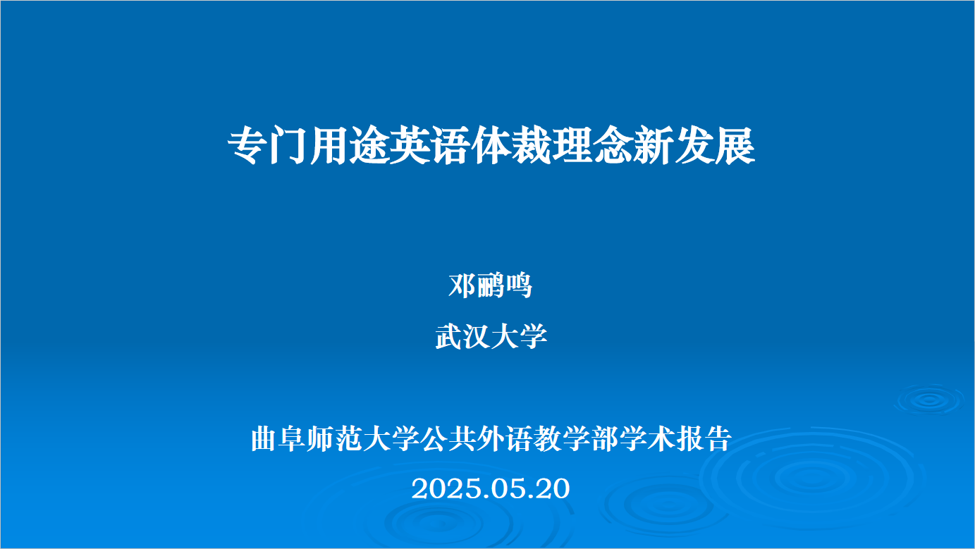 2025年5月20日下午,江南在线注册江南(中国)举办70周年校庆系列学术活动暨博雅讲坛第八场。武汉大学邓鹂鸣教授应邀作题为“专门用途英语体裁理念新发展”的学术报告,江南(中国)全体教师参加活动。