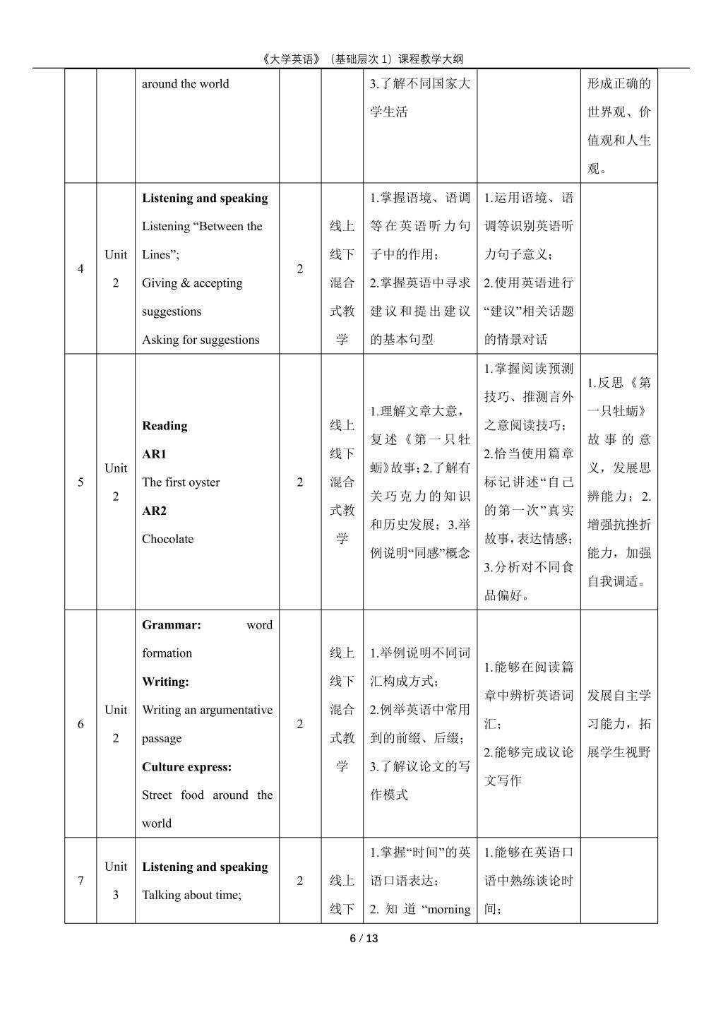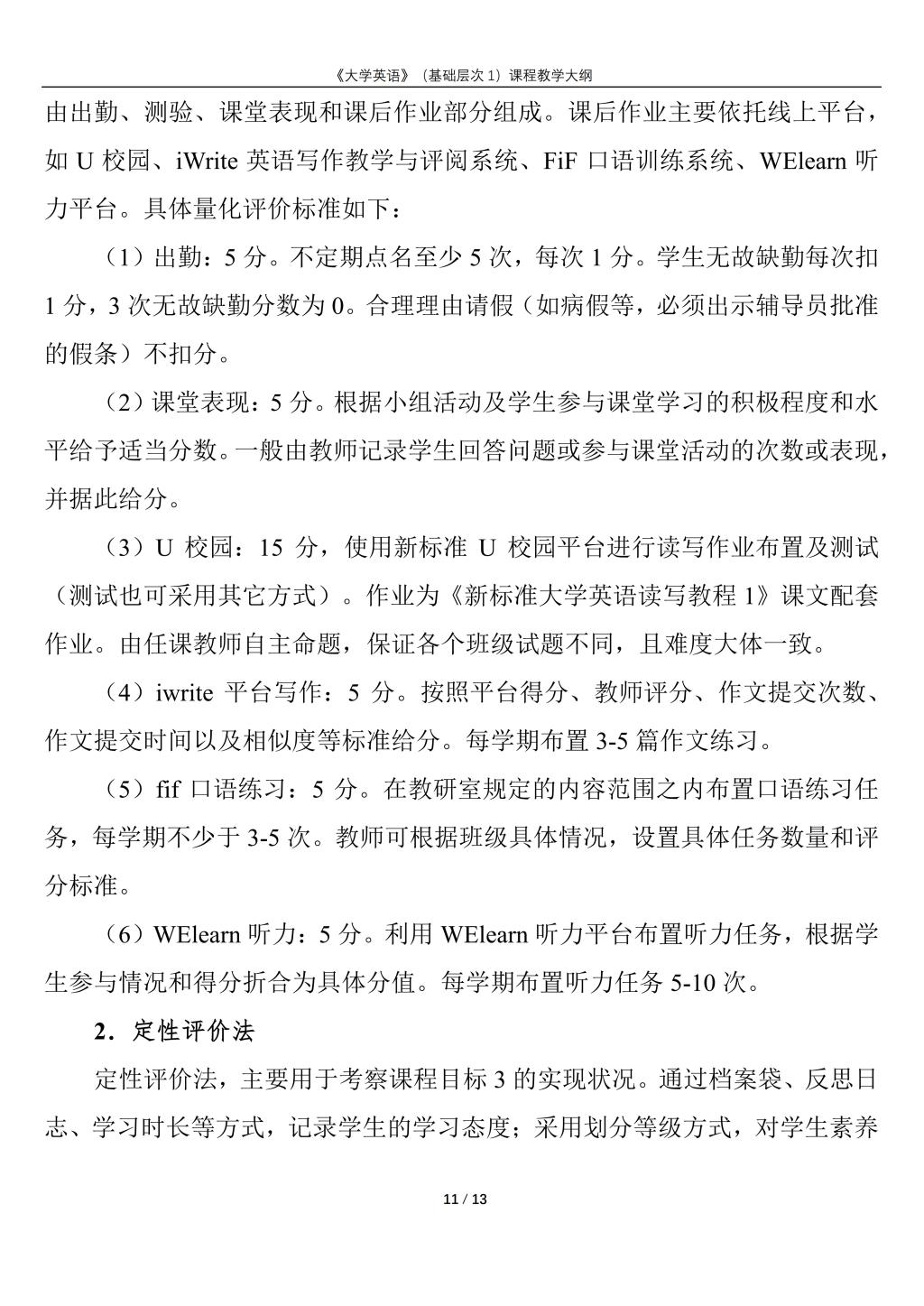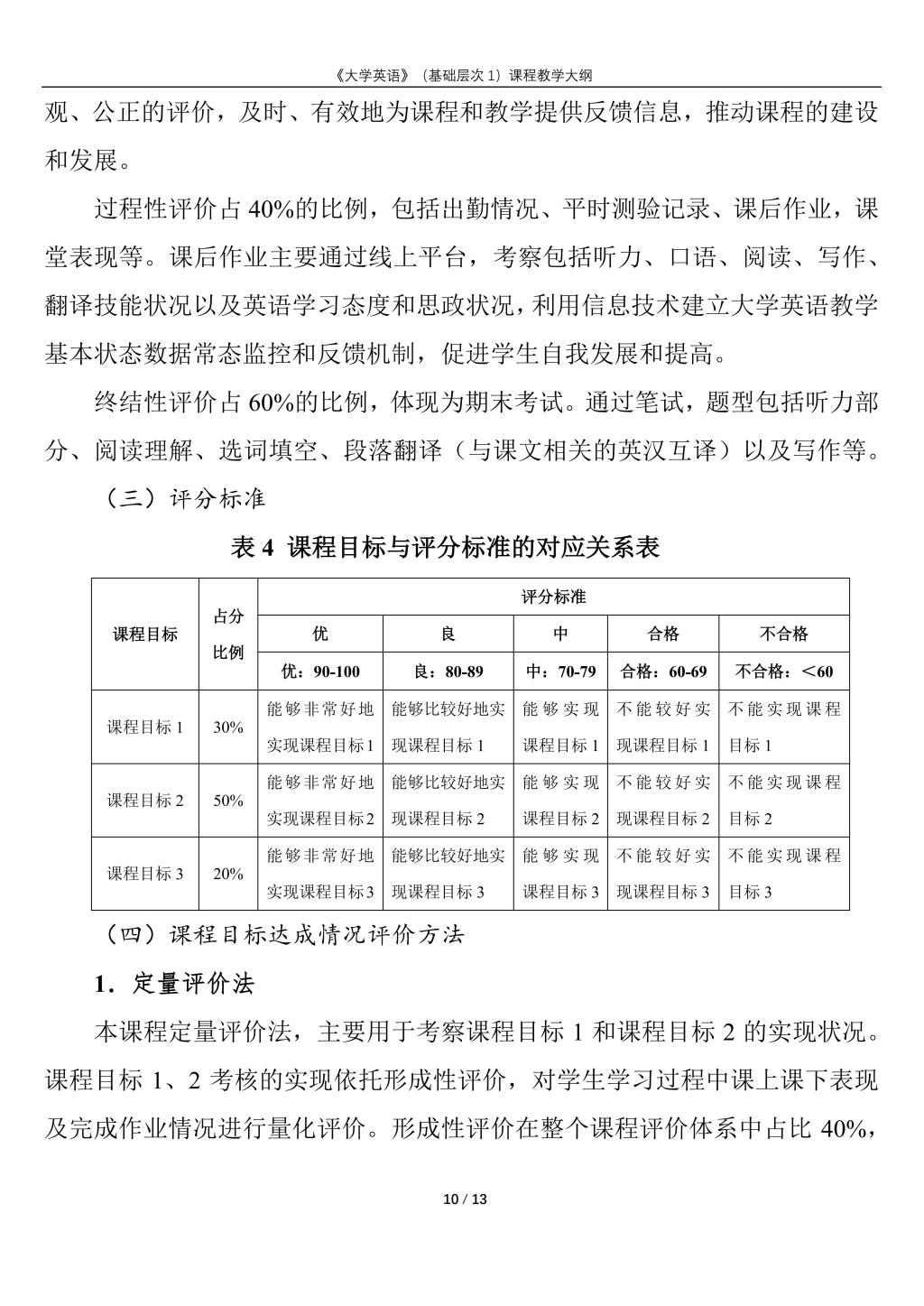 大学英语(普通类基础层次1)课程教学大纲(2022版)
