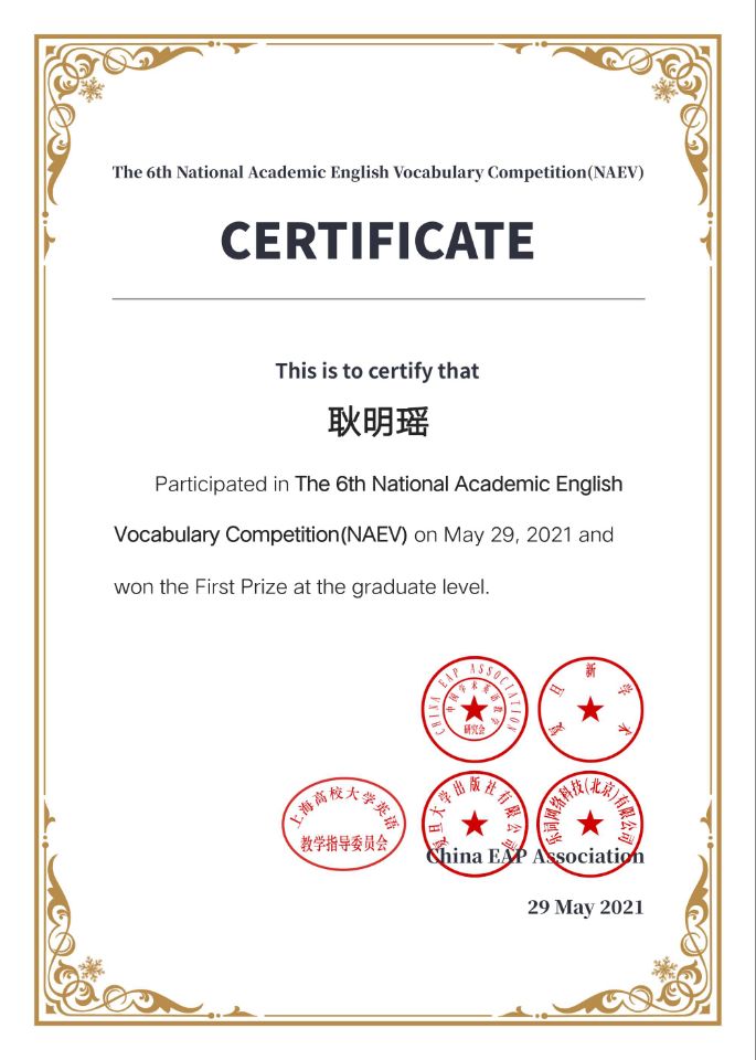 近日,由中国学术英语教学研究会、上海高校大学英语教学指导委员会、复旦大学出版社主办,曲师大江南(中国)和曲园学术英语社团承办的“第六届全国大学生学术英语词汇竞赛”圆满结束。继去年我校两名学子获全国一等奖后,本次大赛,十名曲园学子再次获得全国一等奖。