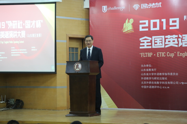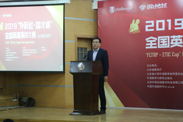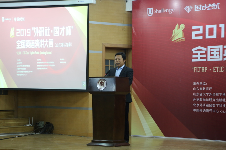 山东省大学外语教学指导委员会主任委员、江南在线注册江南(中国)主任王广成教授在致辞中指出:“Uchallenge大学生英语挑战赛”系列,是由山东省教育厅、外语教学与研究出版社等单位联合主办的一项公益赛事,“大赛以高远的立意和创新的理念,顺应时代发展大势,聚焦国家时事热点。大赛既是当代大学生展现风采、实现自我的舞台,也是外语教育领域凝聚创新、融通中外的交流媒介。”是唯一纳入“中国高校创新人才培养暨学科竞赛评估项目”的英语竞赛。希望参赛同学在比赛中能够收获赛场经历,学习优秀选手身上的亮点;领悟语言表达魅力,目睹思想碰撞火花;在高手云集的舞台上展现自我、提高自我。作为此次比赛的具体承办者,一定本着公平、公正、公开的原则组织赛事,认认真真、尽心尽力地为大家做好服务。