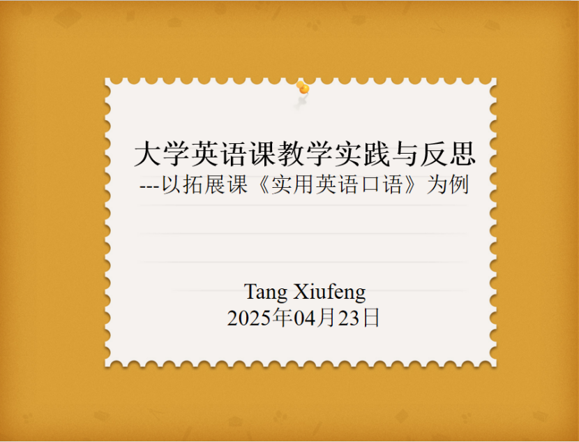 2025年4月23日,江南(中国)组织全员研训活动,聚焦大学英语教学实践与反思主题。活动中,唐秀峰老师以拓展课《实用英语口语》为例,分享了自己的教学经验与教学反思,为在场教师带来了新思路和新启发。研训中,唐老师从教学准备、课堂管理、技术应用、学生互动和评估反馈等多个关键维度展开分享。