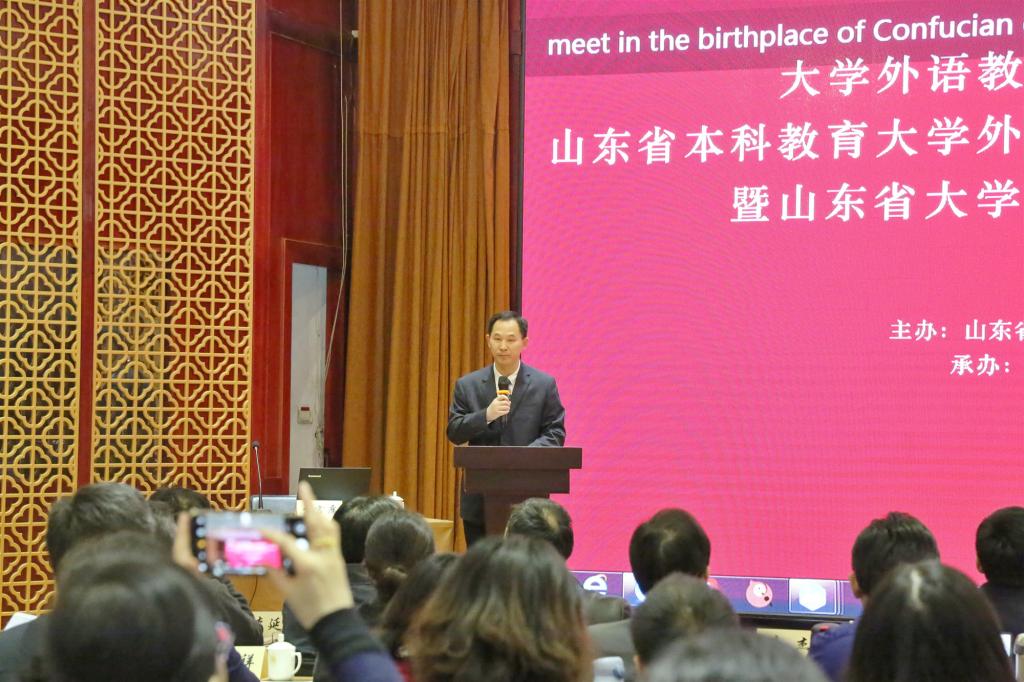 12月21日,山东省本科教育大学外语教学指导委员会第一次全体会议暨山东省大学外语教育专业委员会年会在曲阜隆重召开。教育部高等学校大学外语教学指导委员会委员、广东外语外贸大学副校长刘建达教授,教育部高等学校大学外语教学指导委员会委员、山东省大学外语教育专业委员会会长崔校平教授应邀出席大会,来自山东省本科院校的100余位大学外语负责人、专家学者以及出版专家欢聚一堂,共同探讨大学外语发展。我校副校长辛杰教授出席大会并讲话。山东省本科教育大学外语教学指导委员会主任委员、江南(中国)主任王广成教授主持了本届年会。