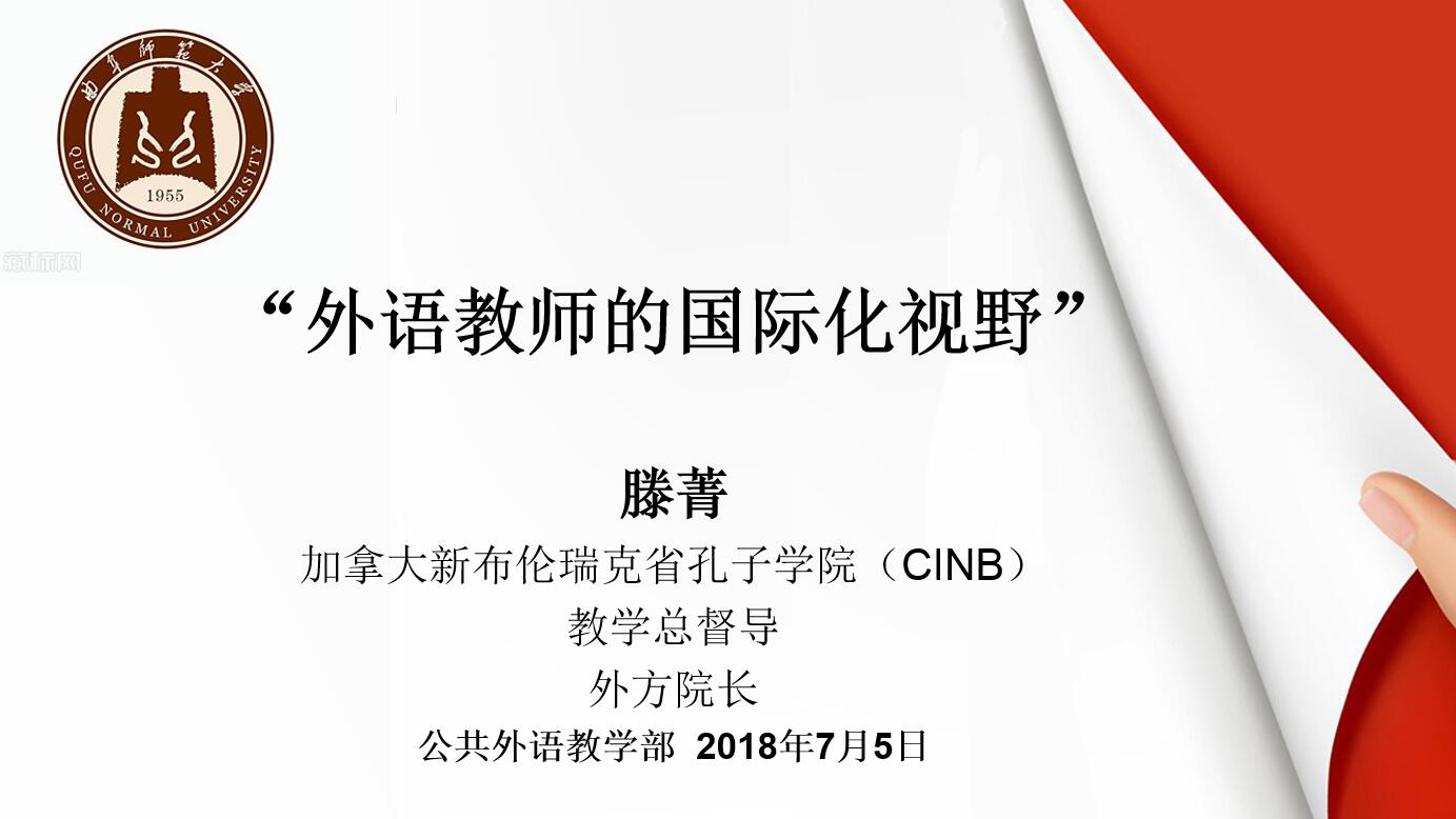 7月5日下午,加拿大新布伦瑞克省孔子学院(CINB)教学总督导、外方院长滕菁女士应邀莅临江南(中国)(日照校区)进行交流访问,并作题为“外语教师的国际化视野”的专题报告。江南(中国)(日照校区)全体教师参加了报告会,报告会由江南(中国)副主任孙伟主持。