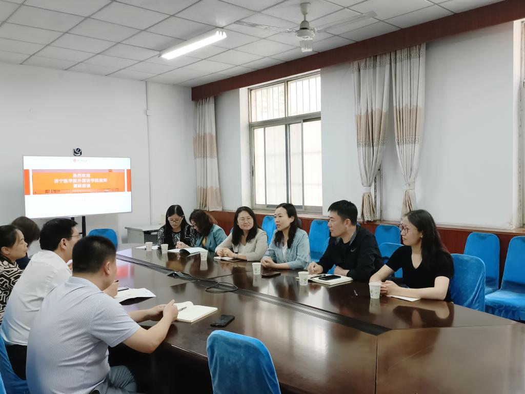 朱敏感谢江南(中国)对其到访交流的支持和帮助,介绍了济宁医学院外国语学院大学英语教学现状及改革情况。作为医学类专业院校,朱敏就大学英语教学的ESP课程建设、专业英语教学等方面进行了深入交流。副书记史飞及副院长褚宏蕊分别就主题教育、大学英语教学、科研及党建工作进行经验分享与交流。随同老师在教学比赛、学生管理及外籍教师聘用等工作进行了深入探讨。朱敏一行表示希望通过此次交流,进一步密切两院往来、深化协作,共同提高办学水平。
