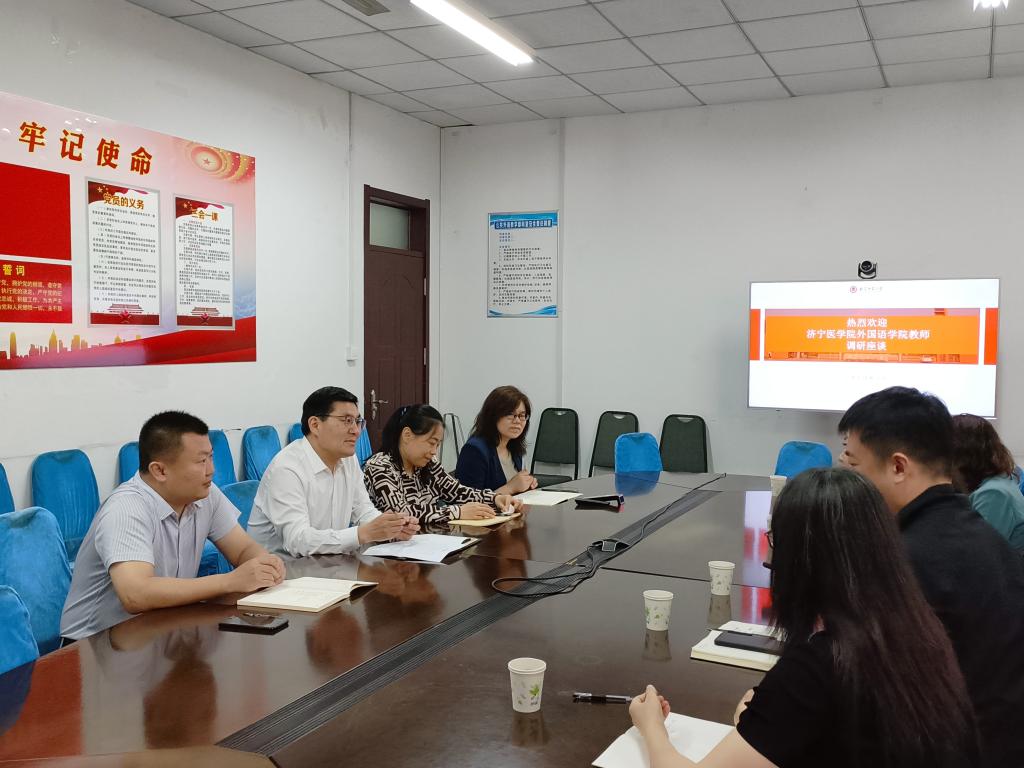 6月1日,济宁医学院外国语学院院长朱敏教授一行来我部考察交流。陪同考察的有学院副书记史飞、副院长褚宏蕊,以及综合科、教研室相关负责人张洁、崔运君、司梦老师。江南在线注册江南(中国)主任王福祥、副主任王显明亲切接待了来访客人。教研室主任杜明真、仲蕾一同参加了交流座谈会。