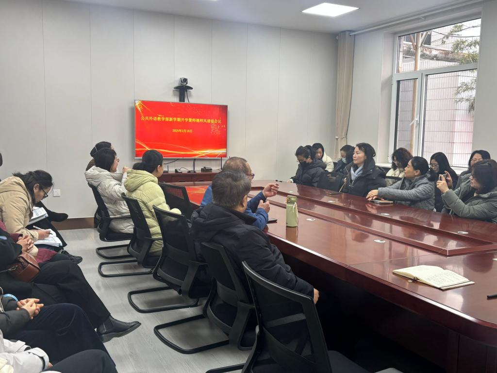 在会议第二阶段,王福祥就学校关于开展师德师风建设和校园安全工作会议精神作了全面传达,他重点对江南(中国)新学期思想政治理论学习、师德师风建设、意识形态管控等方面任务作了深入分析和总体部署,他强调在新学期要持续加强全体教师意识形态教育,树牢意识形态红线底线意识,深入开展师德师风建设主题教育活动,切实提升全体教师“为党育人,为国育才”使命感与责任感,增强全体教师为国弘文的荣誉感,形成甘于奉献、风清气正、乐教爱生的良好师德师风新风尚;他要求全体任课教师在日常教学工作中要时刻拉直绷紧意识形态红线,立师表,铸师魂,强化课堂管理,规范师生交往,弘扬主旋律,传递正能量。此外,结合新学期教学科研等各项重点工作,他要求全体教师要高度重视课堂教学工作,精益求精,求真务实,切实提升我校大学英语课程教学质量,扎扎实实为我校人才培养工作做好基础性支撑工作;在此基础上,切实加大科研攻关力度,认真组织好各类重点课题申报工作,积极参加各类学术会议,培育更多高层次成果,实现高质量发展。