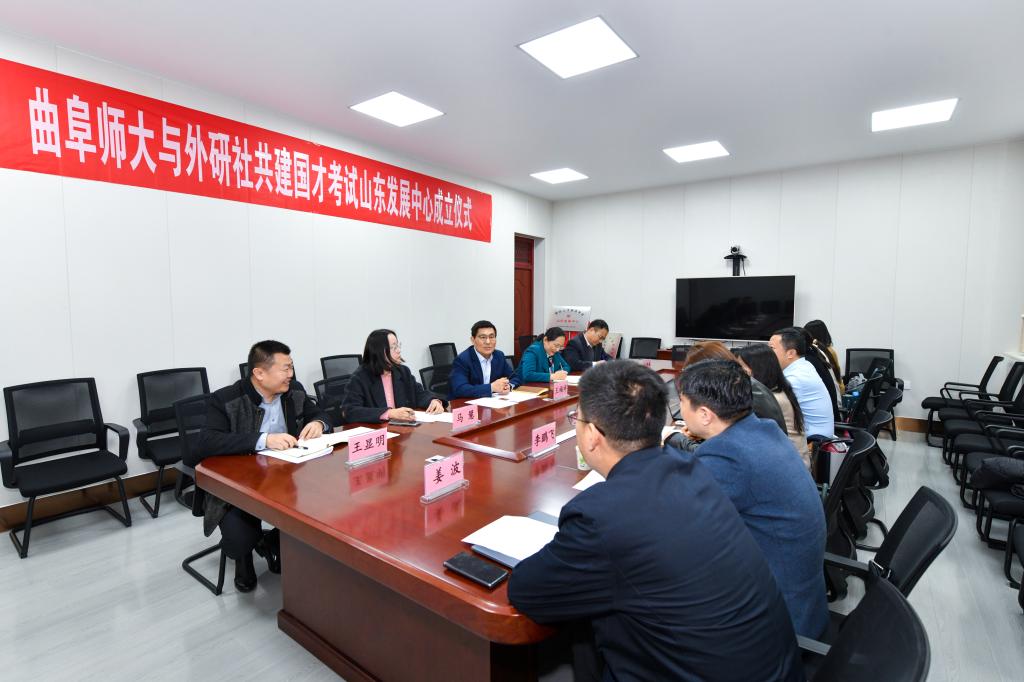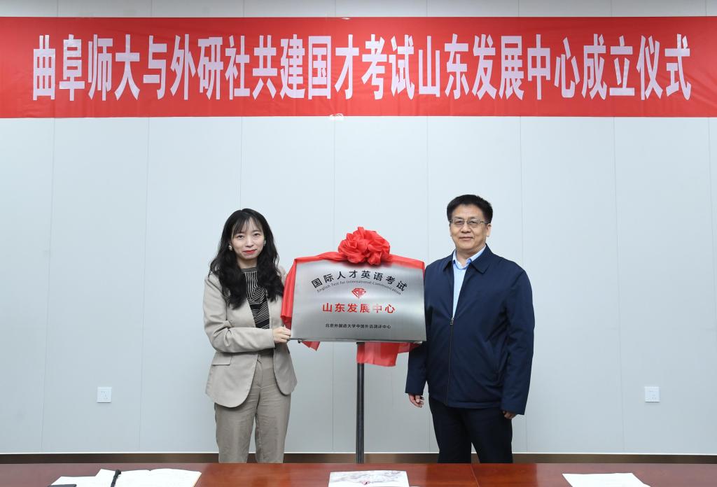仪式上,胡凡刚副校长与冯涛总经理共同为“国际人才英语考试山东发展中心”揭牌,曲师大教务处处长李傅山与外研社高等营销中心华东大区总经理李洪旺为“江南在线注册国际人才培养基地”揭牌。两大平台的成立,将为山东省高校国际化人才培养提供重要支撑。